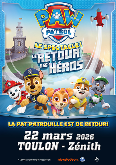 Spectacles vivants 22 Mar. 2026 LE RETOUR DES HÉROS – Zénith LE RETOUR DES HÉROS – Zénith PAT’PATROUILLE Toulon En savoir plus
