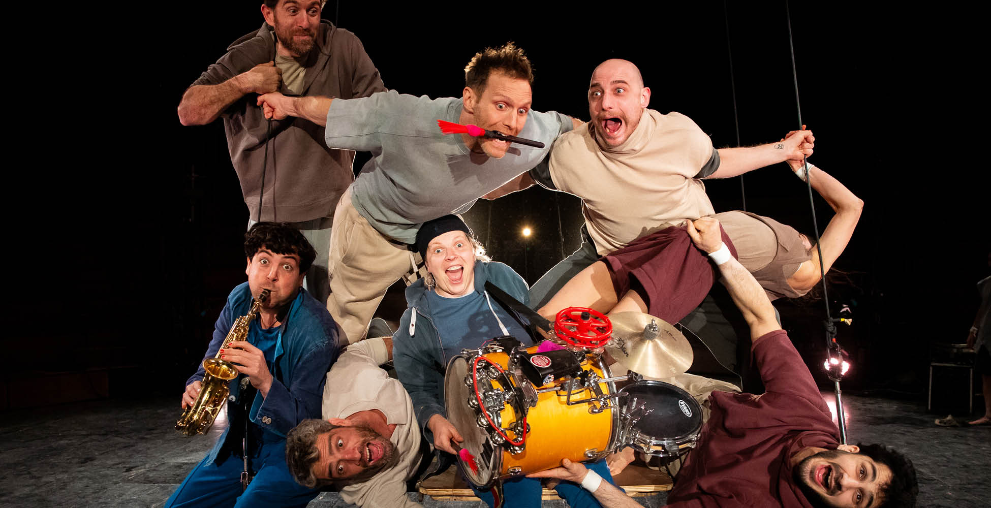 Oui, absolument. Les quatre musiciens sont au cœur du spectacle. Ils ne sont pas en retrait : ils partagent la piste, interagissent avec les acrobates et participent à la dramaturgie. Tout est joué en live, ce qui crée une tension et une liberté particulières. Chaque représentation est vivante, légèrement différente. L’acrobatie devient presque un instrument supplémentaire, tandis que la musique devient un partenaire physique. Cette fusion est essentielle pour nous : elle donne au spectacle son souffle et son rythme.