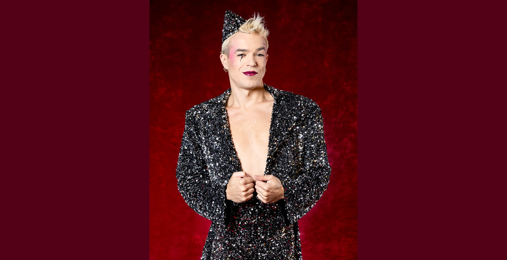 Alors, je n’utilise pas le terme de drag queen pour moi et, au sein du Cabaret de Madame Arthur ce n’est pas le terme qu’emploie la majorité des artistes. Bien sûr, nous partageons avec les drags beaucoup de références, mais Madame Arthur, originellement, est un cabaret de travestis, c’est à dire avec des hommes qui mettent des robes ! Aujourd’hui, depuis sa refonte et réouverture il y a une dizaine d’années, le Cabaret de Madame Arthur est devenu plus contemporain, et nous utilisons un terme qui englobe un peu tout ça, le mot de “Créature“, dans lequel chacun se reconnaît. J’ai une esthétique plutôt androgyne avec des références qui se rapprochent de David Bowie, Elton John, des modèles très flamboyants, mais qui ne vont pas jusqu’à l’autre côté…