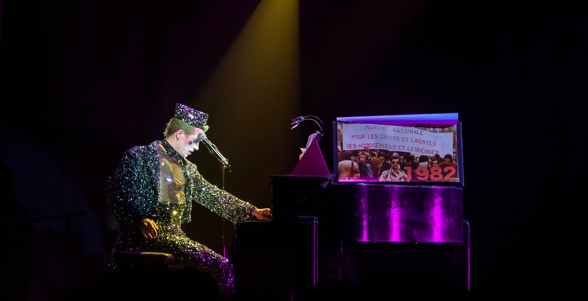 C’est une partie des questions que soulève ce show. Nous repartons de la base en parlant de ces quelques dates-clés qui rappellent d’où nous venons, où nous sommes aujourd’hui, mais aussi de ce qui nous menace peut-être pour demain. Nous venons de l’Underground et nous y sommes toujours, malgré tout, même si nous avons plus de visibilité, nous n’avons pas encore rattrapé d’autres formes d’arts vivants. Et, en ayant plus de visibilité, nous sommes également davantage exposés sans être protégés pour autant. Donc la reconnaissance à égalité avec les autres n’est pas encore là et surtout, l’Underground n’est jamais très loin, il est possible que nous y retournions avec ce qui se passe actuellement ! J’essaie de faire confiance aux mouvements de l’histoire, en espérant que nous allions dans la bonne direction. Mais, ce que nous voulons avec ce spectacle, c’est “donner de l’air“ aux personnes qui viennent nous voir, nous les faisons rire, chanter, réfléchir et se sentir bien, quelle que soit leur identité, nous ne nous adressons évidemment pas uniquement à la communauté LGBT, et ce spectacle permet un moment de communion vraiment sympa.