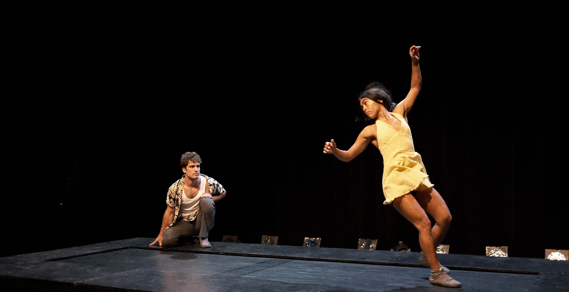 Le spectacle parle beaucoup de la relation à l’autre. Même dans le solo, il est question de l’absence, de quelqu’un qui n’est pas là mais qui existe malgré tout. Le duo, interprété par Magdalena Hidalgo et Nicolas Moreno, évoque très clairement le couple, l’amour, la confiance. Ils sont ensemble dans la vie, et cela nourrit profondément la pièce. La moindre erreur peut avoir des conséquences pour l’autre. Cette fragilité partagée devient une métaphore des relations humaines, prises dans une vie qui va trop vite, où l’on cherche à se retrouver sans jamais pouvoir vraiment s’arrêter.