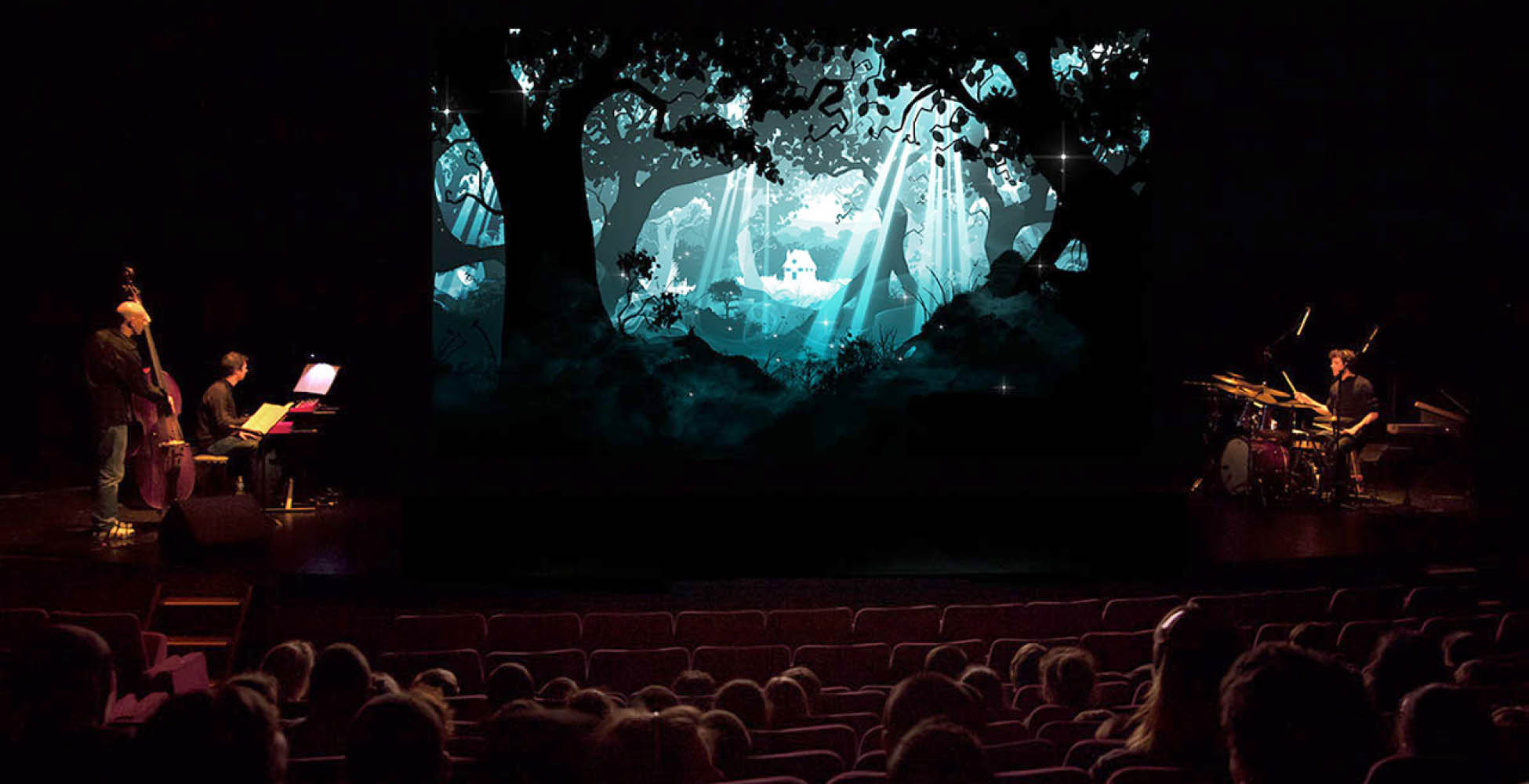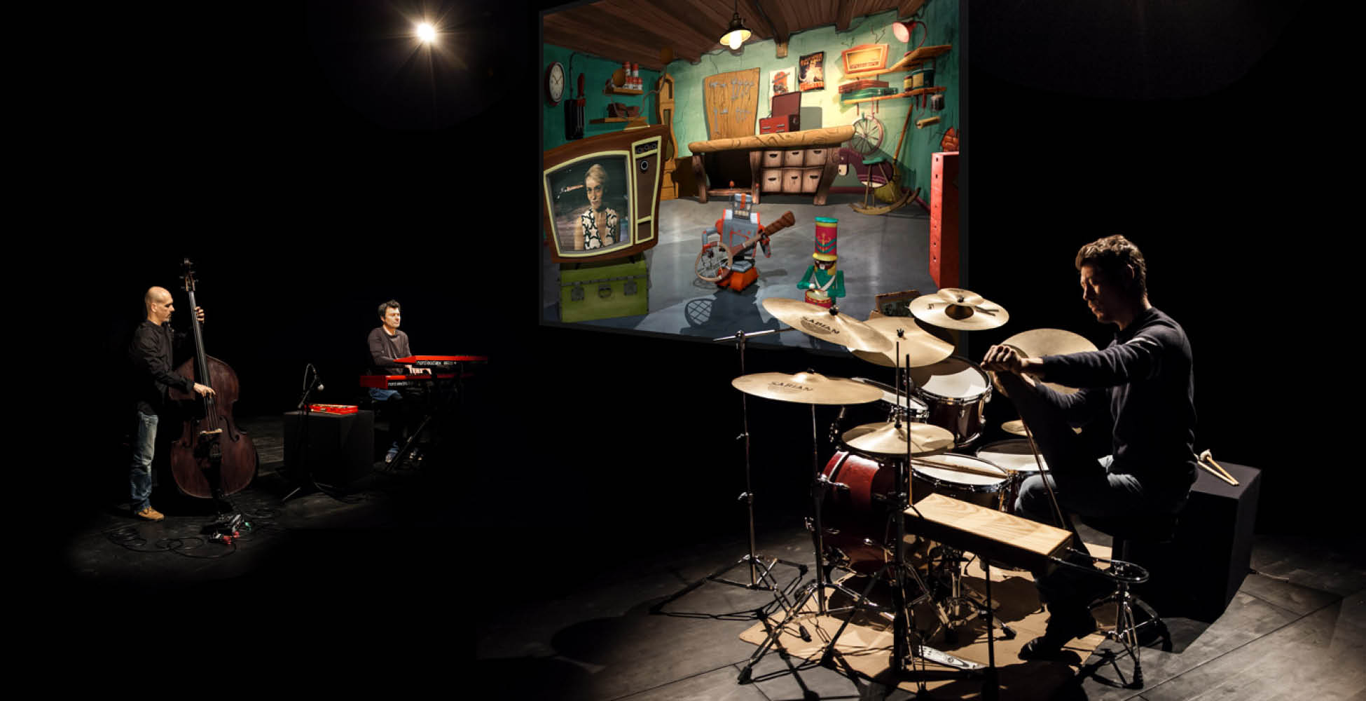 Nous sommes un trio de formation plutôt jazz – contrebasse, batterie, piano – avec un son acoustique. Mais, selon les films et les scènes, l’ambiance change et on peut aller aussi vers l’électronique. On est un peu multicartes. Nous jouons ensemble depuis longtemps et cette complicité nourrit l’improvisation.