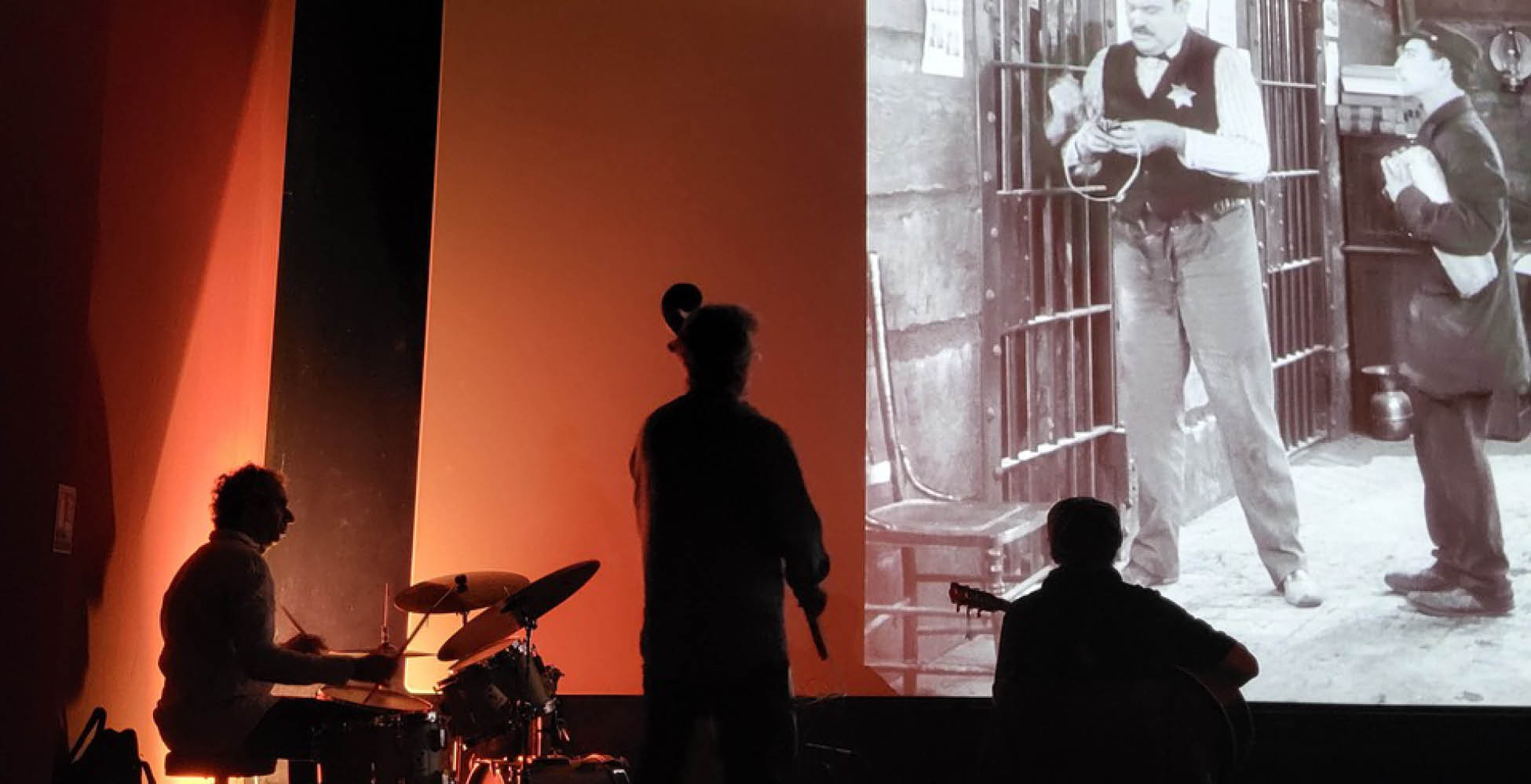 J’ai grandi à l’époque du cinéma de minuit et du ciné-club, et j’ai toujours eu beaucoup de plaisir à regarder des films du “patrimoine“. Donc, quand on nous a proposé, au début des années 2000, de jouer devant des films de Buster Keaton j’ai sauté de joie ! C’est une occasion incroyable de jouer en trio et de proposer de nouvelles idées. C’est toujours un combat avec le personnage du film, avec les situations. Un ciné-concert, c’est presque du sport. Il y a des films qui durent pas loin de deux heures, et c’est un marathon pour la mémoire, le corps, le jeu, les oreilles. Il faut être attentif aux copains, on est ensemble, on se donne la main, on s’aide, on s’entraide, on se parle, on se fait signe, c’est presque un match ! J’adore cet exercice, nous nous régalons à chaque fois, même si le travail peut être long et fastidieux, quand nous réussissons à plaquer nos idées sur les images, la magie se crée et c’est évidemment très agréable.